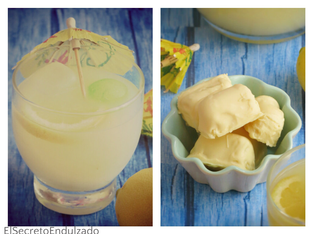 Para los polos, utilizamos para de nuestra limonada, lo ponemos en unos molde de cubiteras y los dejamos en el congelador durante 5 horas. Una pasadas estas horas, los sacamos. Calentamos el chocolate blanco hasta que de disuelva. Y lo vamos poniendo por encima de nuestra «cubitos de limón». Tener cuidado que el chocolate no esté muy caliente para que no de derrita todo…jejeje Buscar un punto medio 😉
