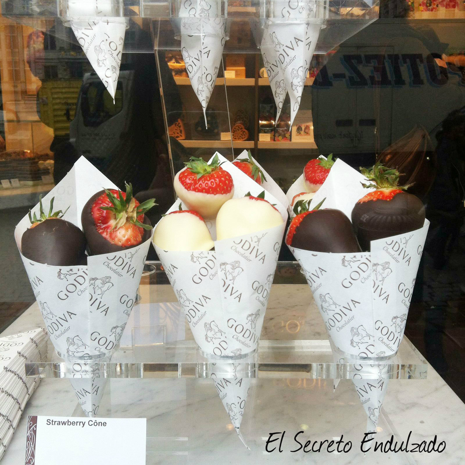 Conocida por much@s de nosotr@s, aunque para nosotras todavía poco tasteada, godiva es la marca de chocolate belga. Su primera tienda fue en la Grand Palace en el año 1926. Super acogedora, y muy tentadoras sus fresas con chocolate fundido! Impresionantes esos conos…se nos hacía la boca agua 😉